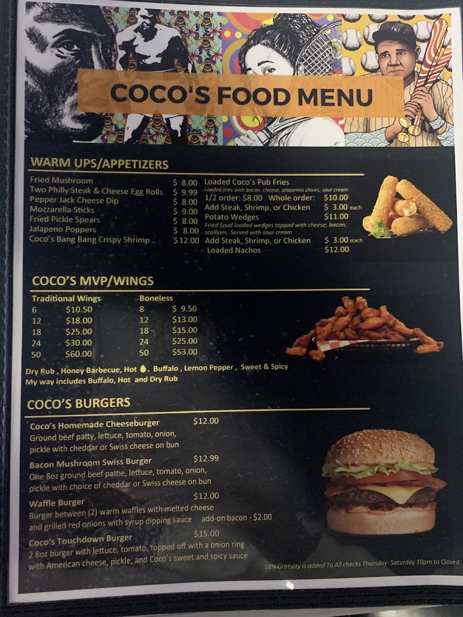 Welcome to Coco’s Sports Bar & Restaurant, a vibrant gem located at 605-A Greenville Blvd SE in Greenville, NC. Coco’s menu is a sports fan’s paradise, with an impressive selection of wings offered in both traditional and boneless varieties, featuring mouthwatering flavors such as garlic parmesan, sweet & spicy, and honey barbecue.
